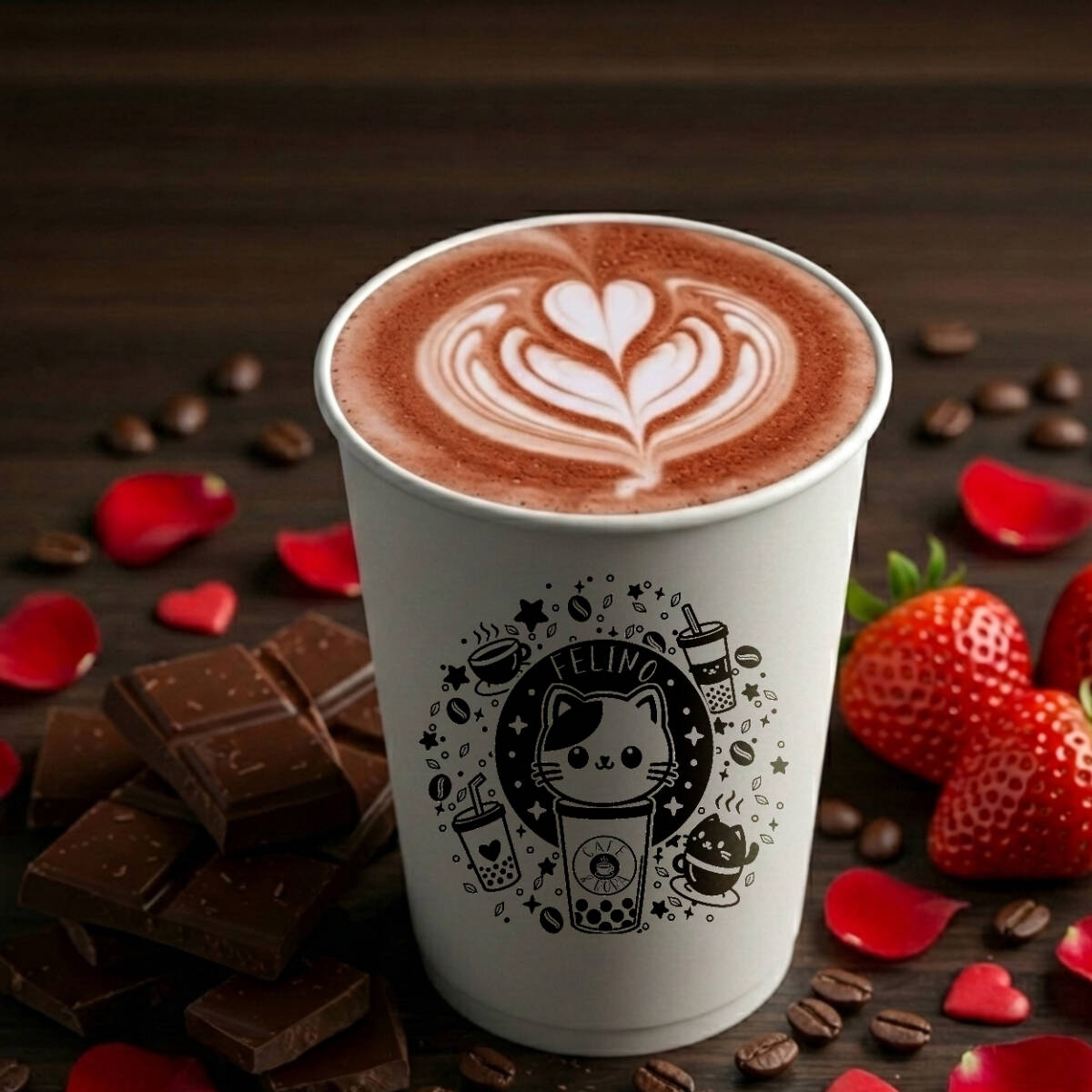 Un delicioso café latte que despertara la pasión en ti con su sabor a fresas y aroma a rosas. No lo dejes escapar.