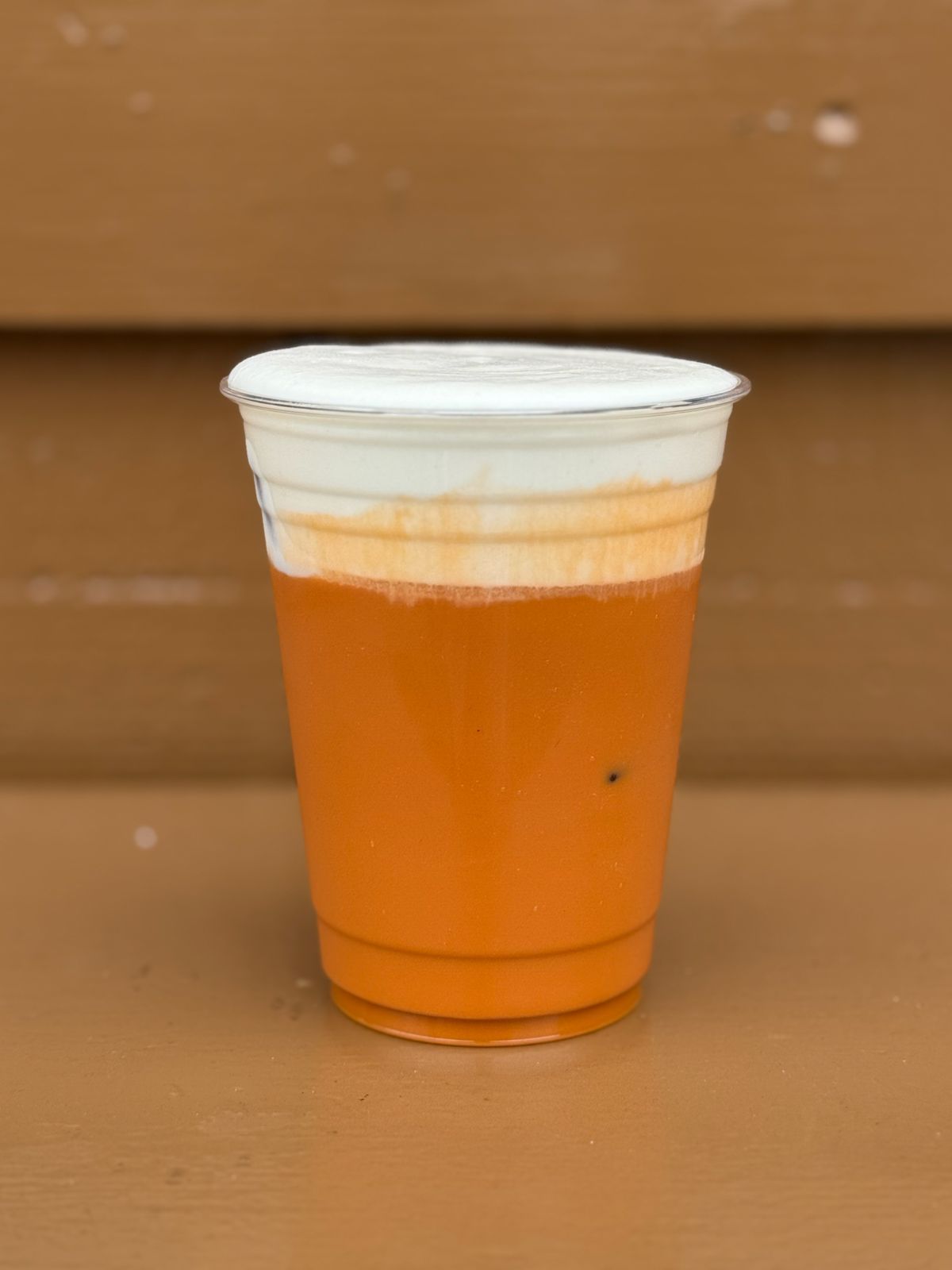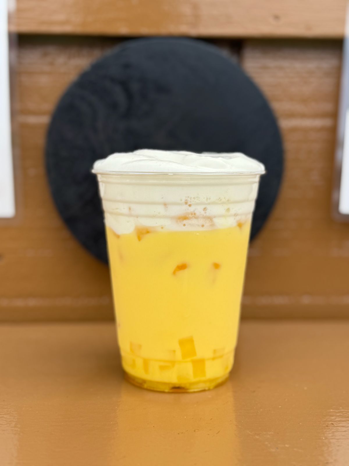 Té de mango con topping de crema de queso.
