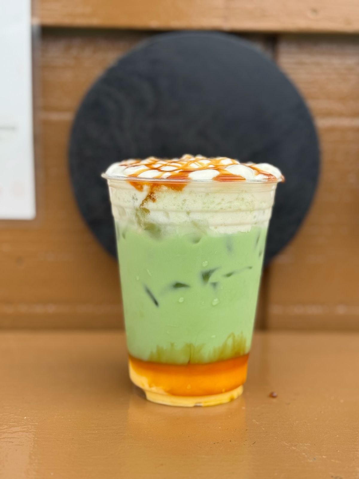 Matcha suave con un toque dulce y dorado.