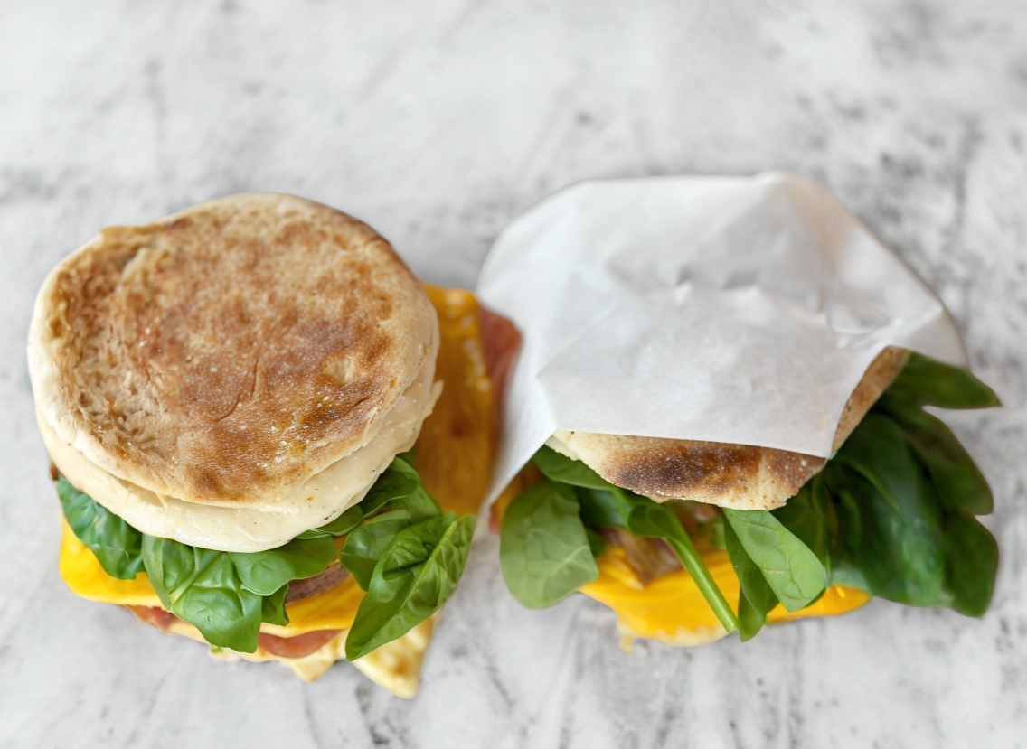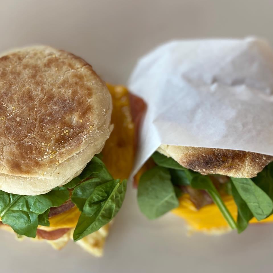 Jamón, queso mozarella, aguacate, espinacas y tocino más ensalada verde, jugo de naranja 100% natural o café.