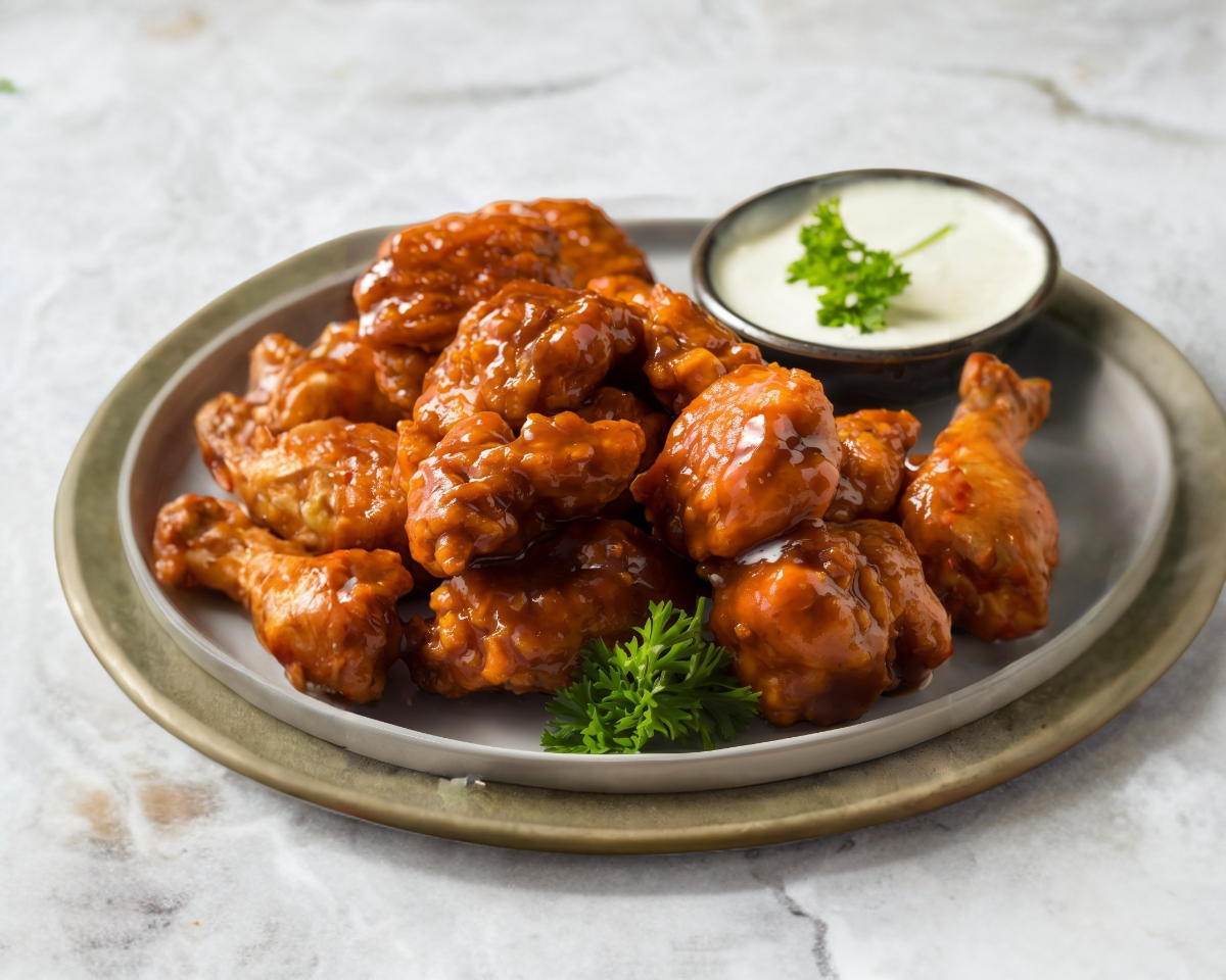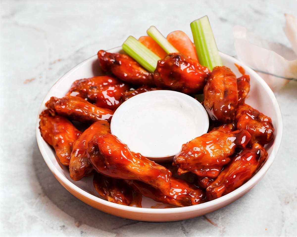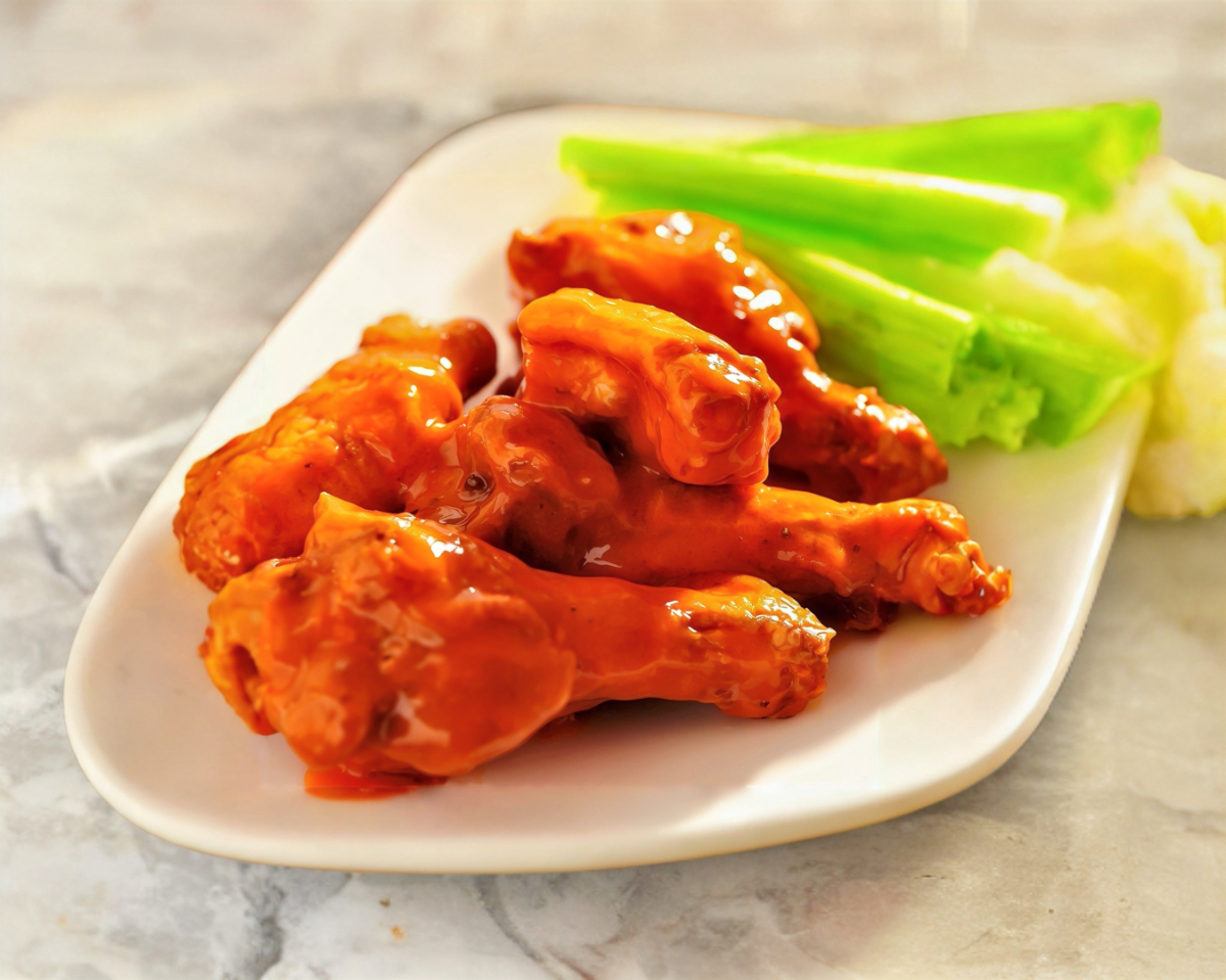 Alitas de pollo 10pzs,acompañanas con apio,zanahoria y aderezo ranch.