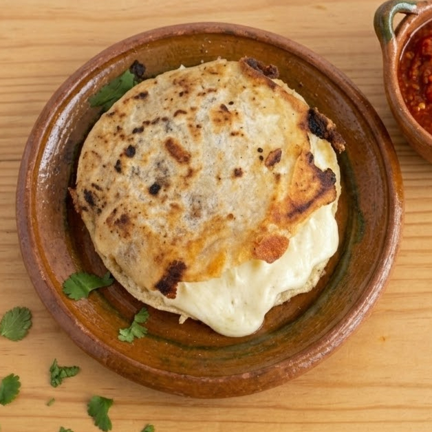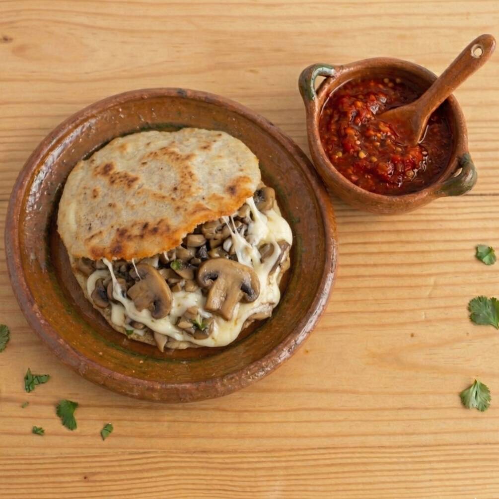 Gordita de champiñón con queso cocida en comal 1 pza.
