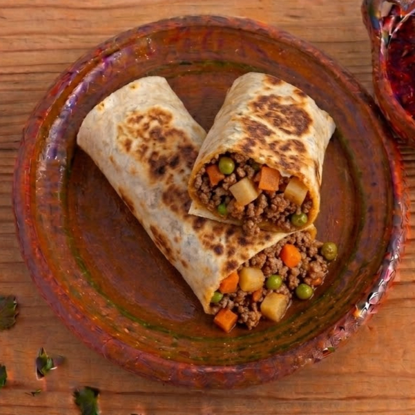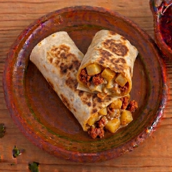 Burrito de papas con chorizo cocido en comal 1 pza.