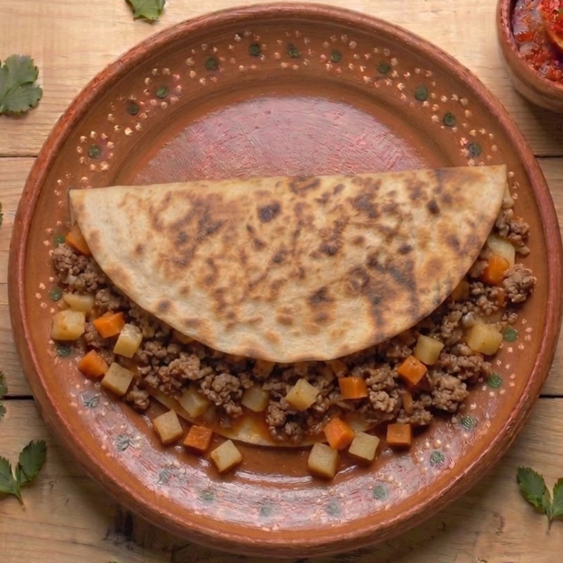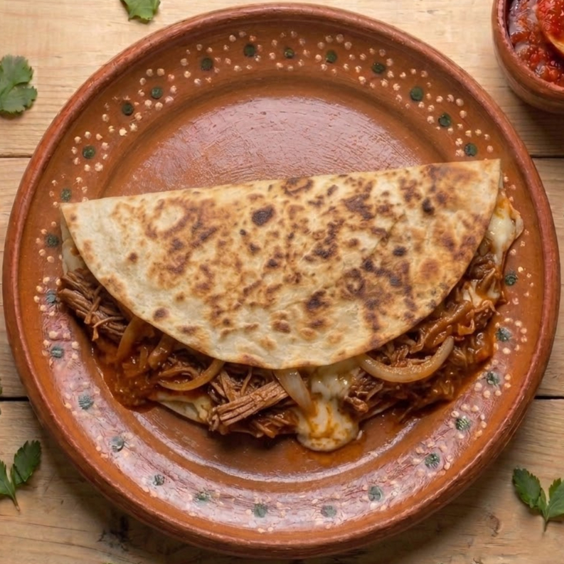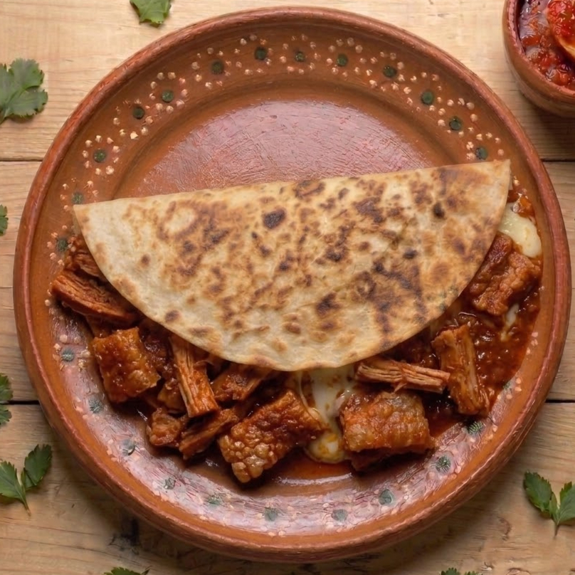 Quesadilla de tinga de res cocida en comal 1 pza.