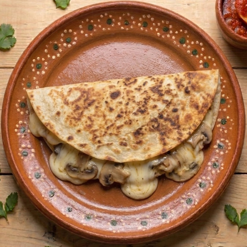Quesadilla de champiñón con queso cocida en comal 1 pza.