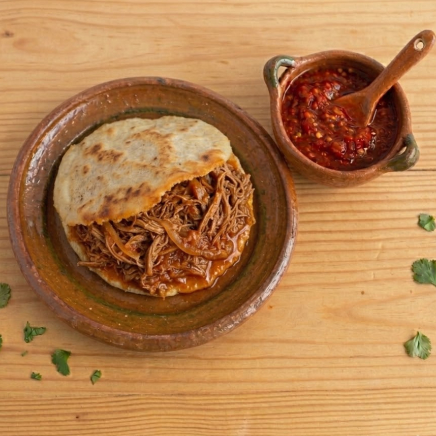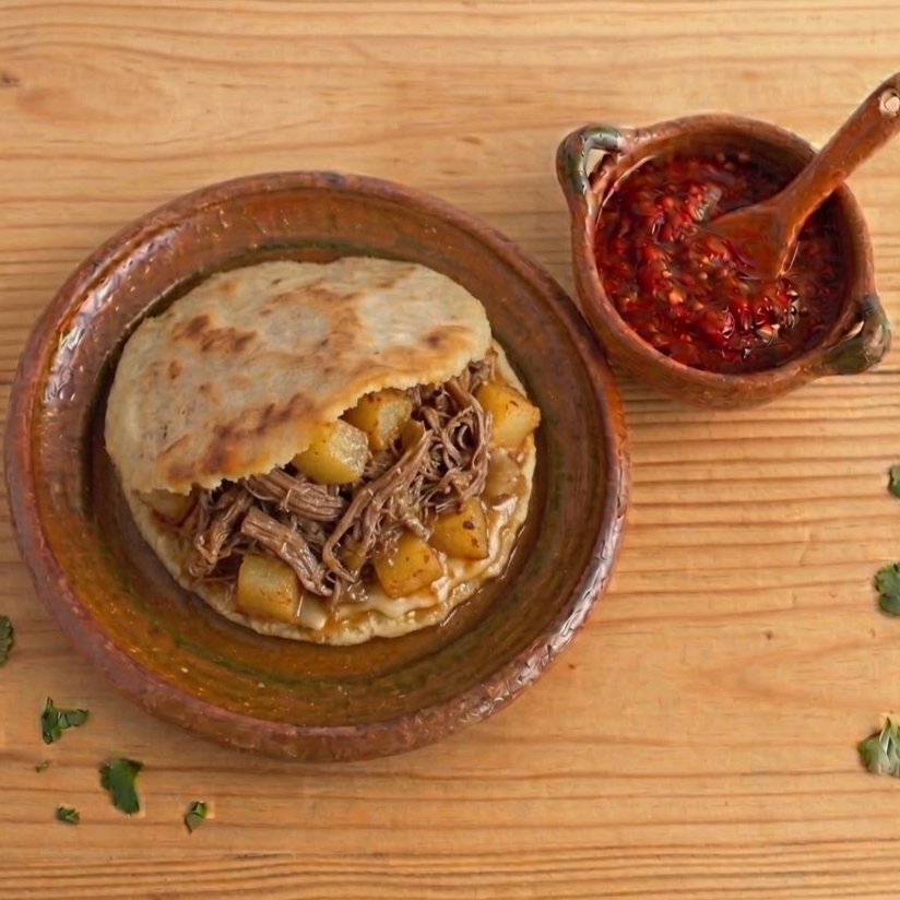 Gordita de papas con deshebrada cocida en comal 1 pza.
