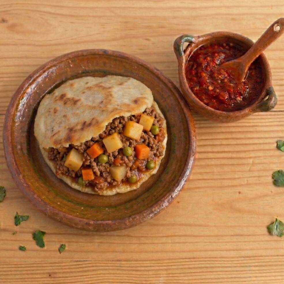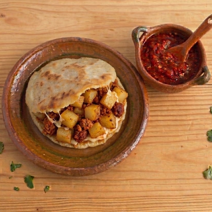 Gordita de papas con chorizo cocida en comal 1 pza.