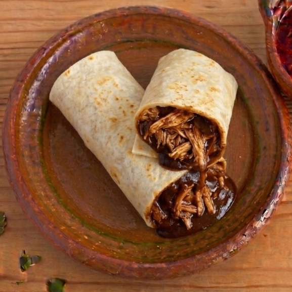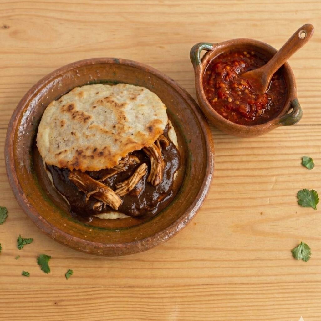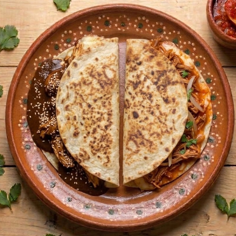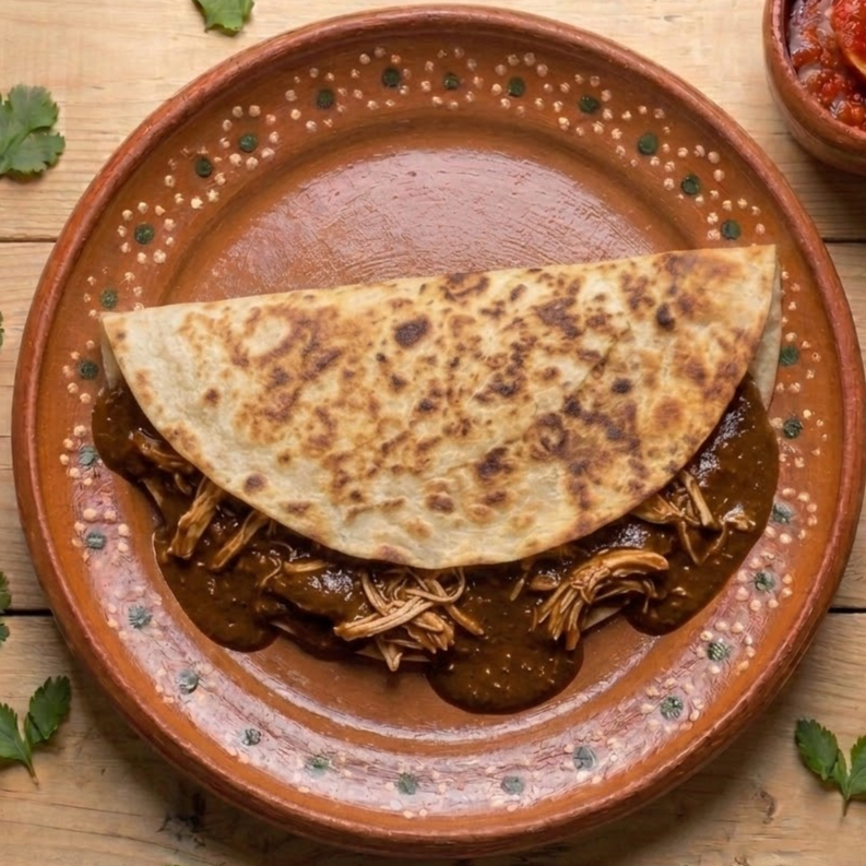 Quesadilla de mole con pollo cocida en comal 1 pza.