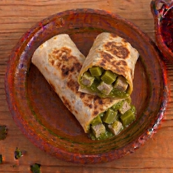 Burrito de nopal con puerco en salsa verde cocido en comal 1 pza.
