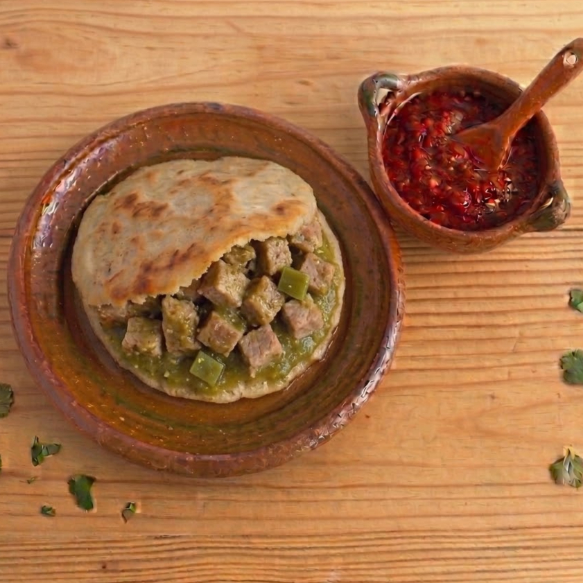 Gordita de Nopal con Puerco en Salsa Verde 1 pza
