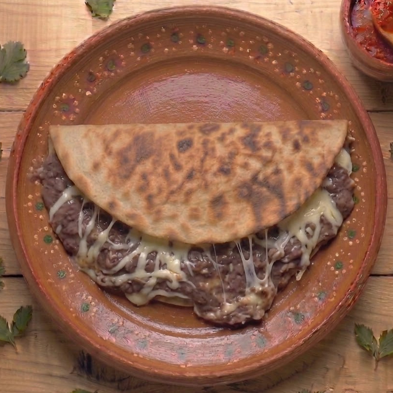 Quesadilla de frijoles con queso cocida en comal 1 pza.