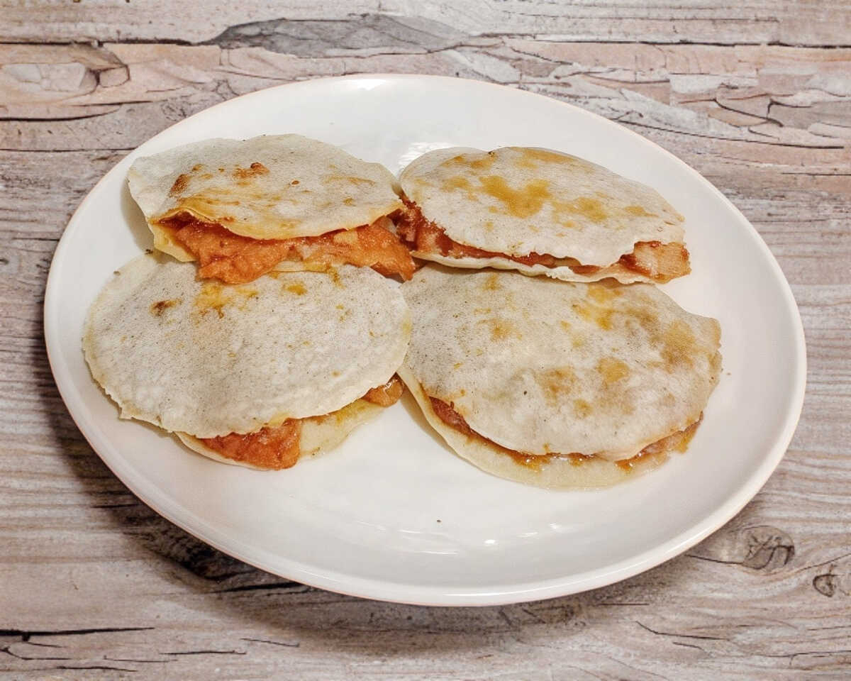Llevan Cebolla, Queso y Crema. Acompañado de Huevo Estrellado y Frijol Refrito.