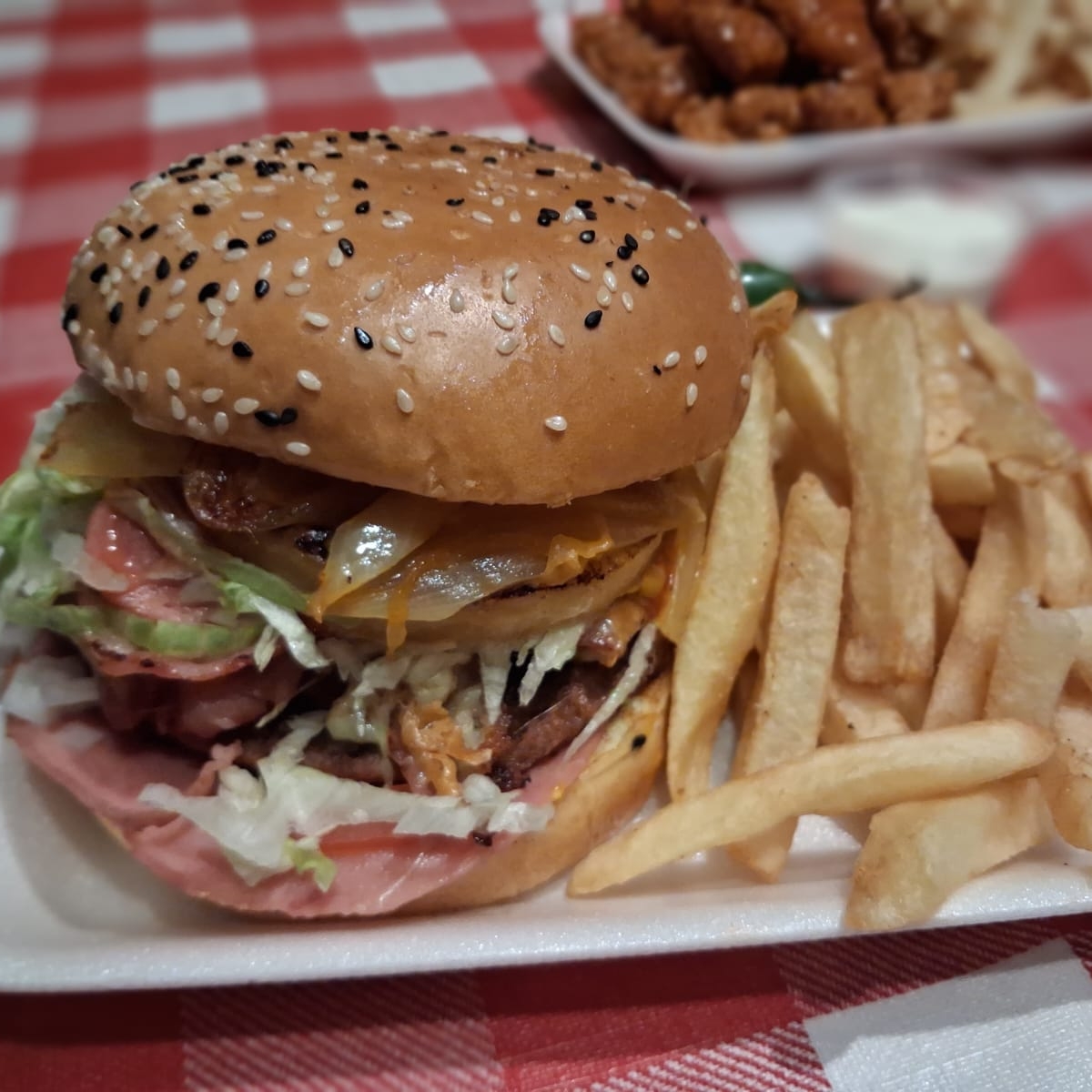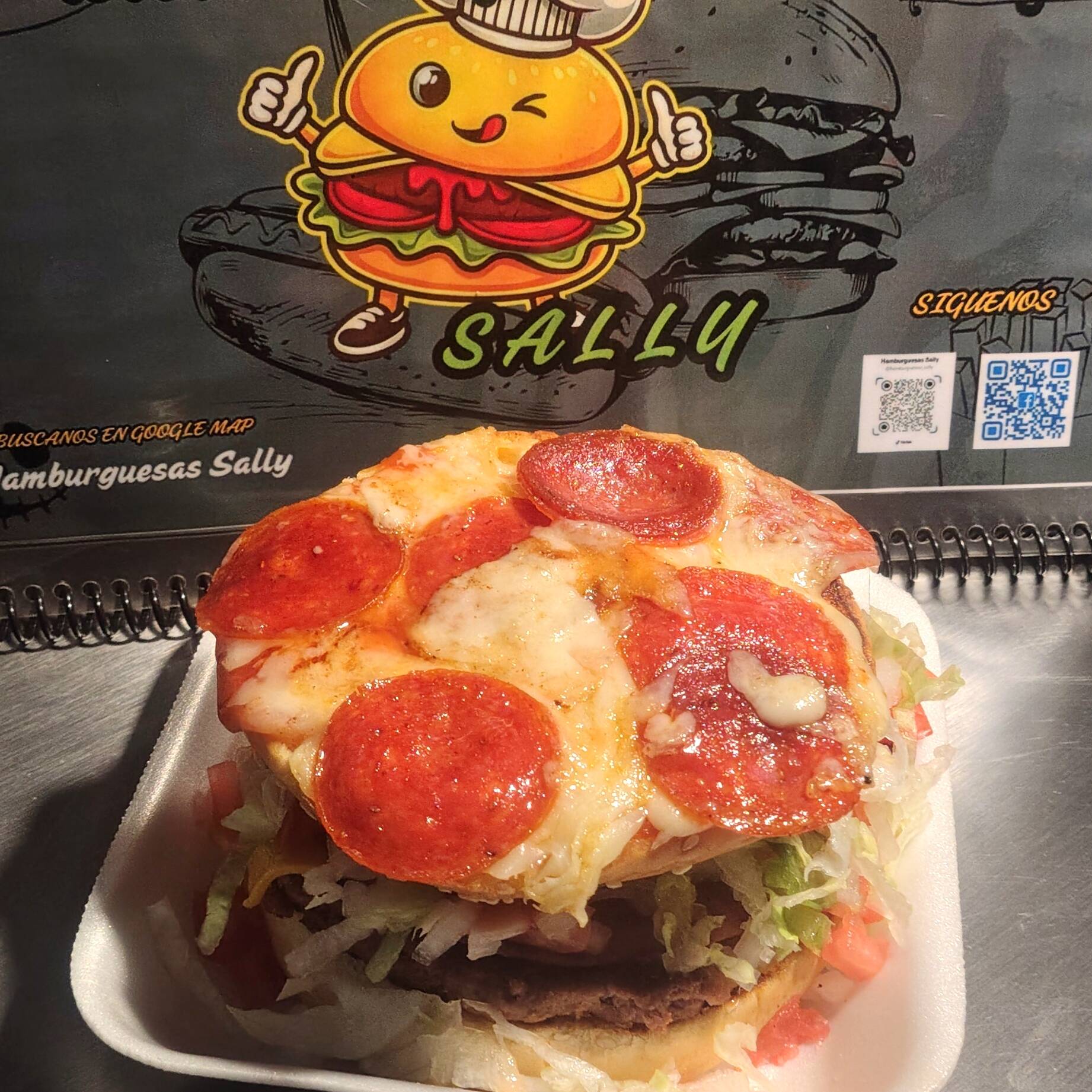 Doble Carne, Jamón, Doble Queso Amarillo, Tomate, Cebolla Lechuga Mayonesa, Catsup, Mostaza