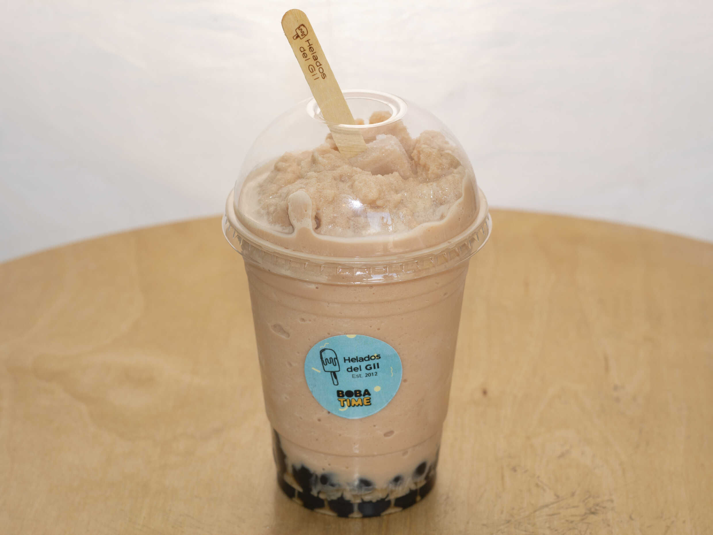 Paleta de 110 ml 5.8 gr carbs x porción; cocoa, leche de almendras, crema para batir, almendras, goma guar y endulzado con monk fruit.