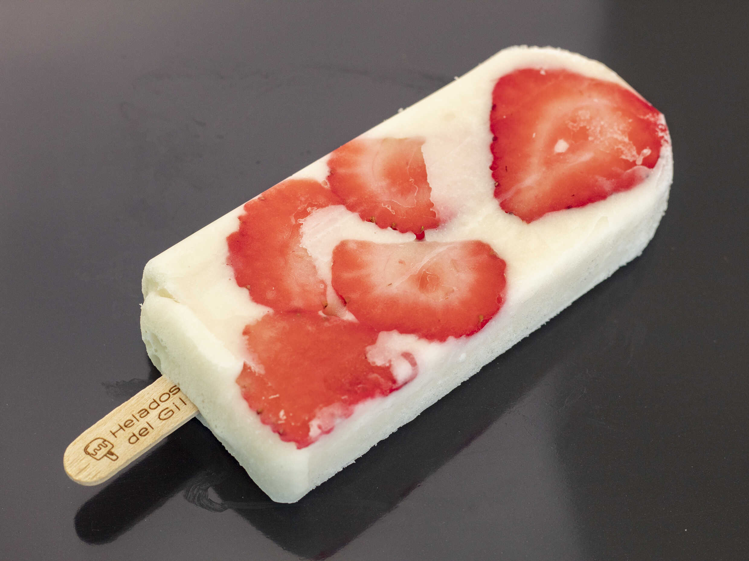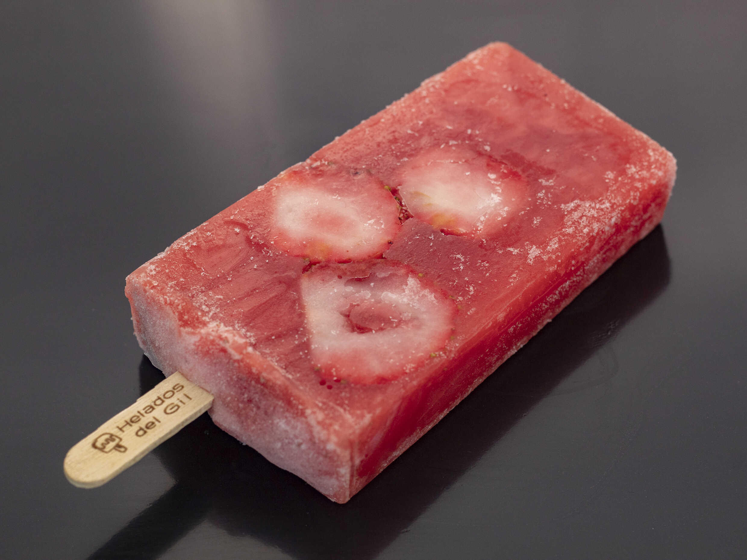 Paleta de 110 ml 3.3 carbs x porción: fresa de temporada, goma guar y endulzado con stevia.