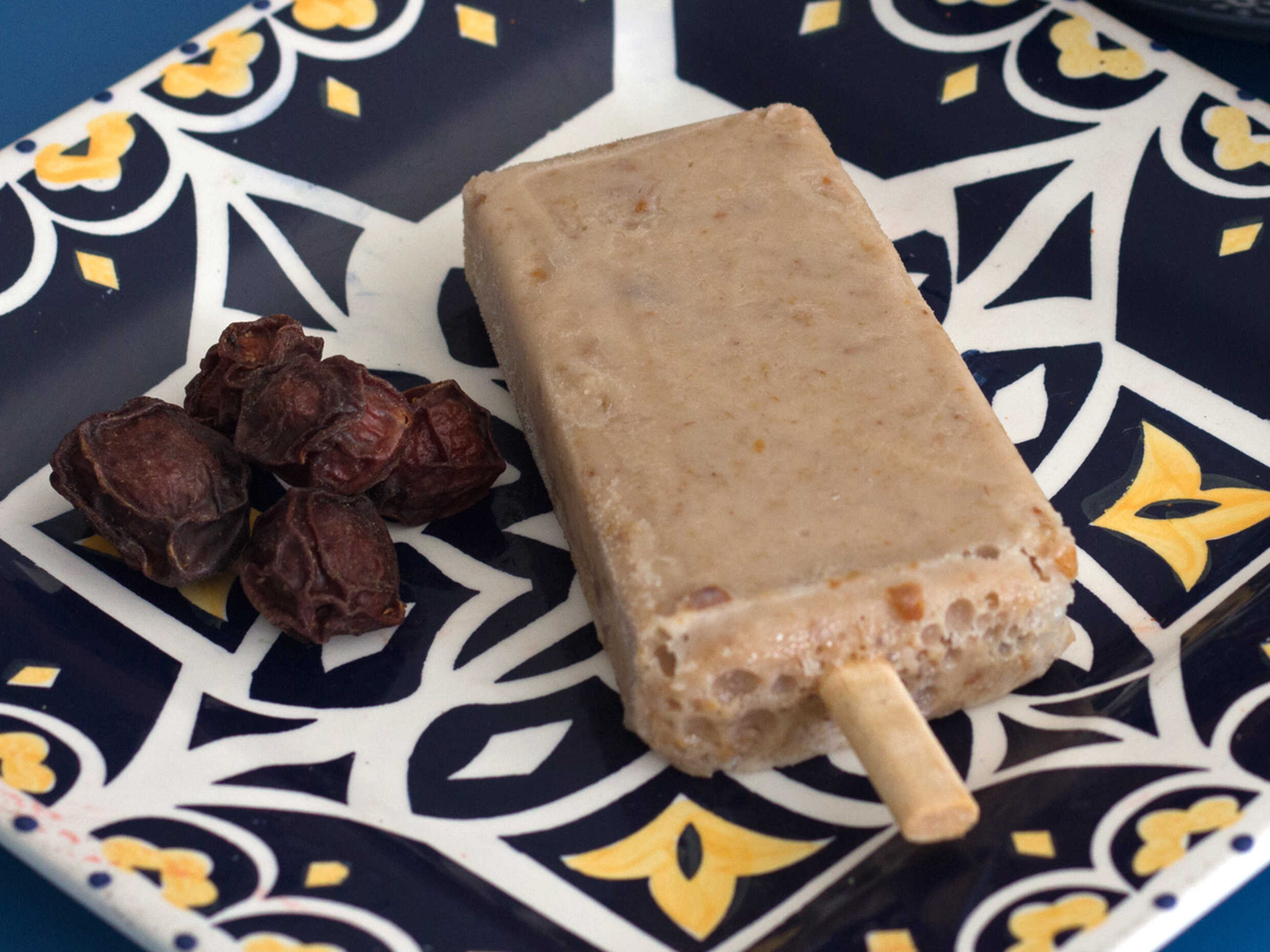 Paleta de 110 ml 5.32 gr carbs x porción: mazapán endulzado con Splenda, cacahuate, goma guar, leche de almendras, endulzado con monk fruit.
