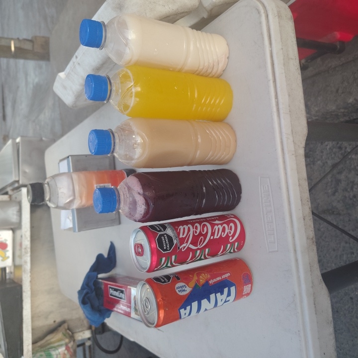 Refrescante soda de sabor o agua embotellada para acompañar tu comida.