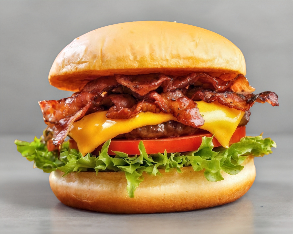 HAMBURGUESA CON TOCINO (INCLUYE PAPAS )
