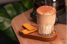 Latte natural con cold foam sabor Lotus y topping de galleta Lotus