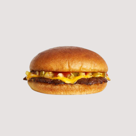 Pan artesanal, carne 100% de res, aderezo de habanero tatemado, queso cheddar, queso monterrey, cebolla morada y pepinillo picado.