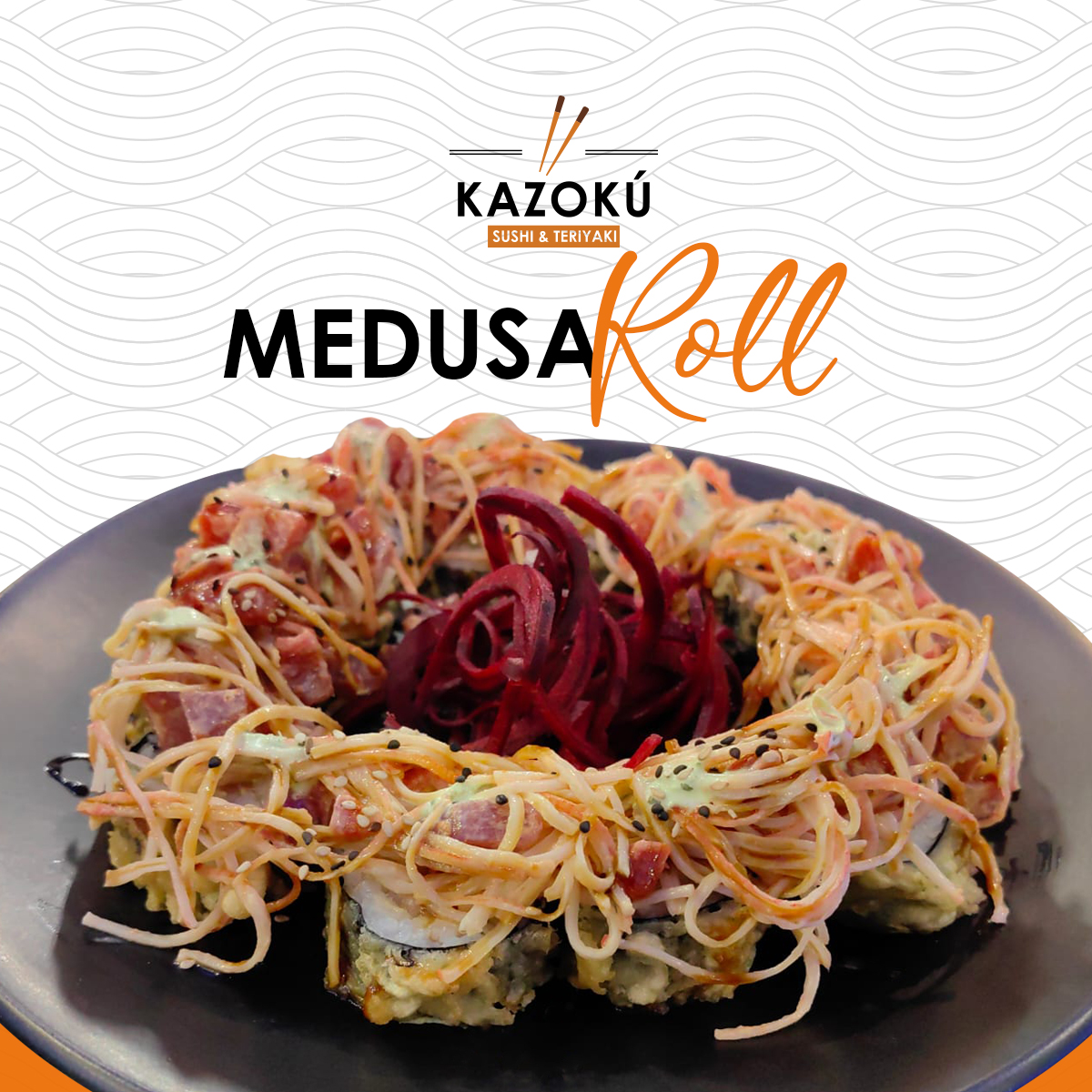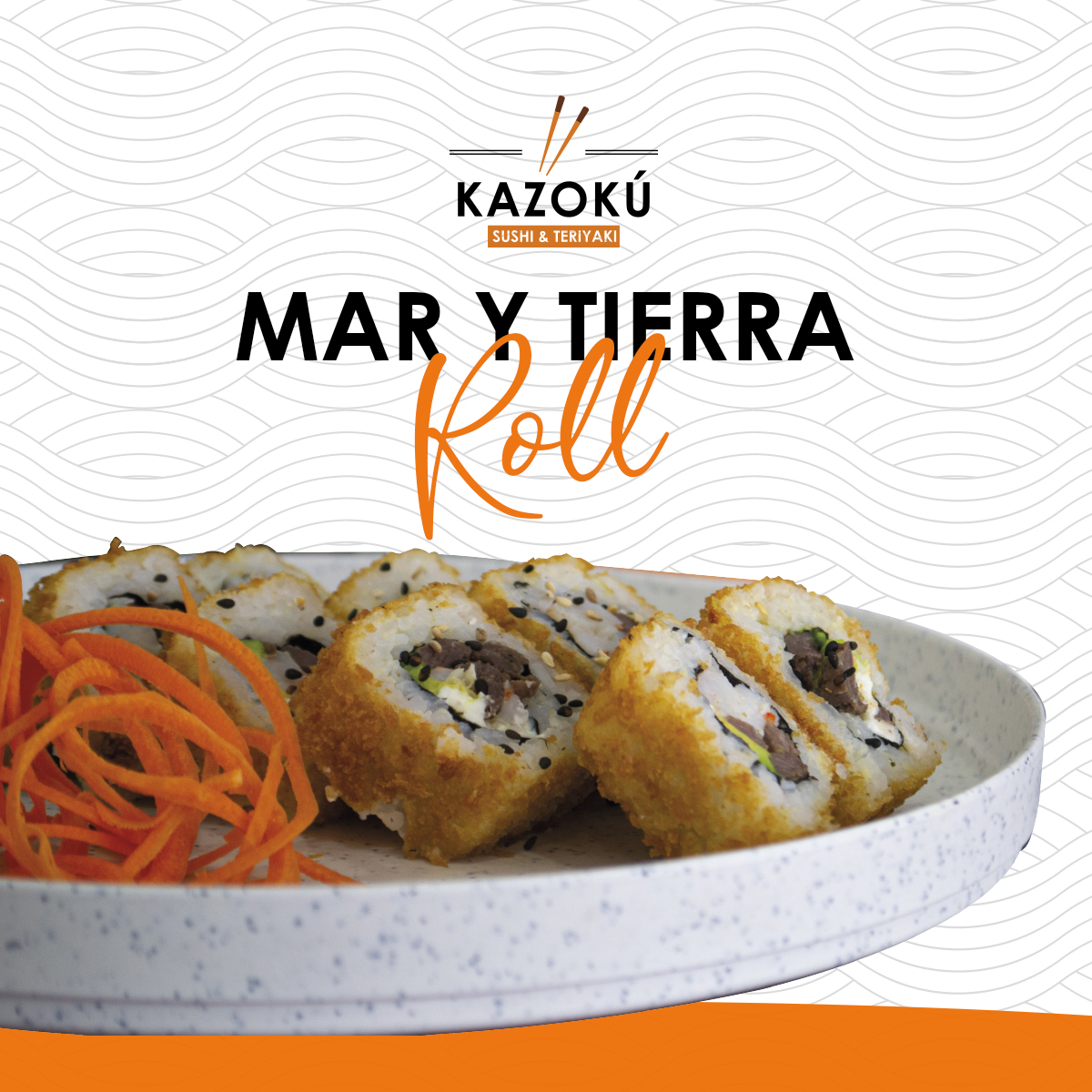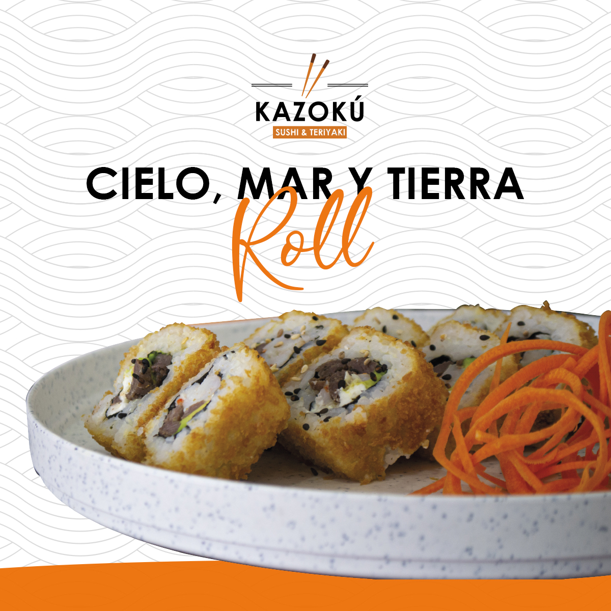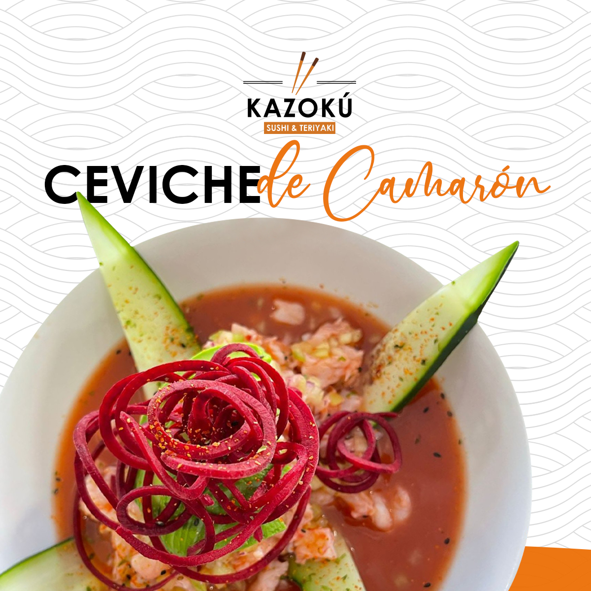 Camarón tempura, atún, queso, pepino, forrado de cangrejo spicy, salmón y camarón, forrado de aguacate y bañado en salsa dulce.