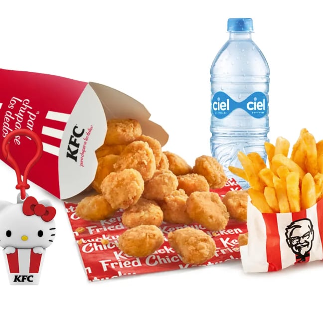 1 Hamburguesa Kruncher + 1 papas individuales + 1 Llavero Hello Kitty + 1 agua ciel 600 ml Se asigna 1 llavero coleccionable aleatoriamente y esta sujeto a disponibilidad