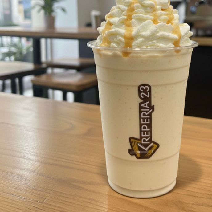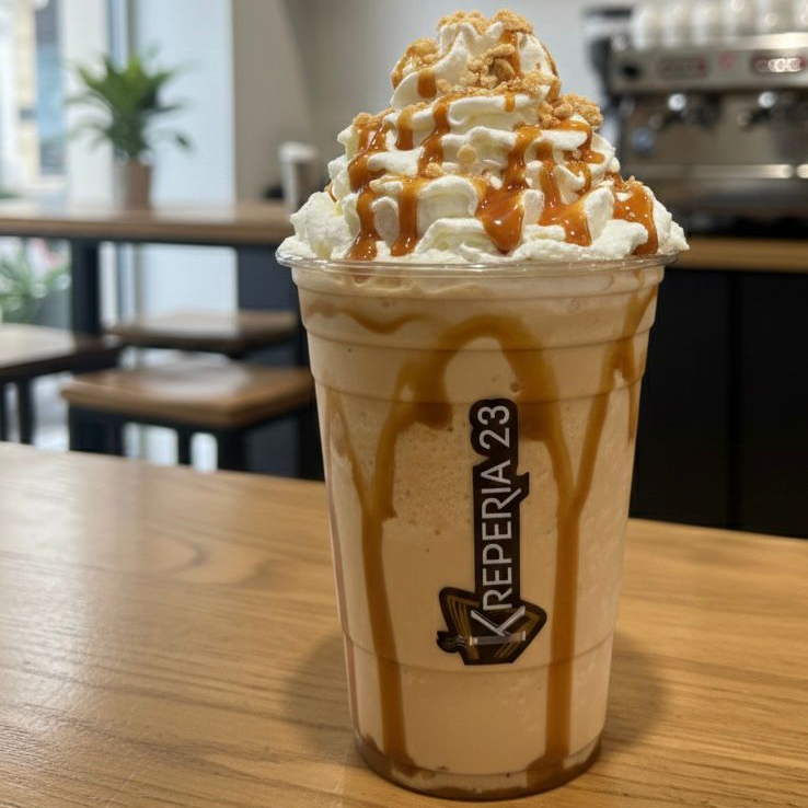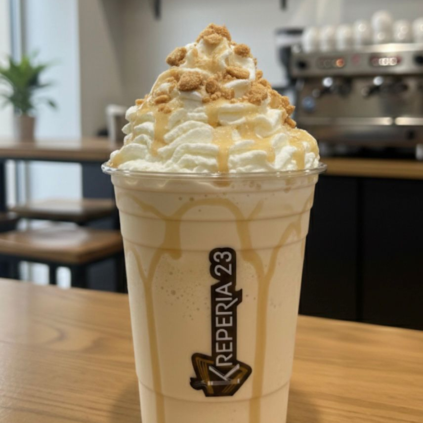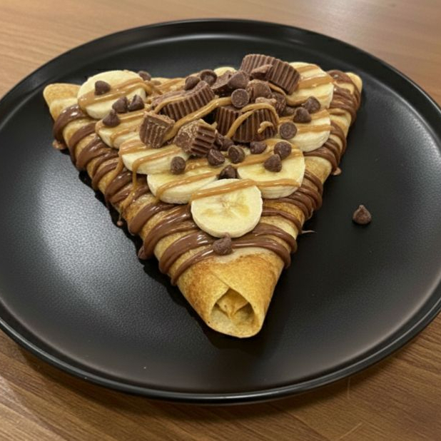 Base de crema de cacahuate con Nutella y plátano, decorada con trozos de chocolate Reese’s