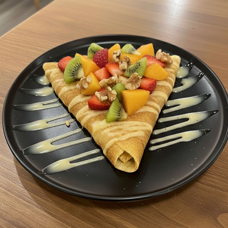 Base de Lechera con fresas, kiwi y durazno, decorada con nuez troceada y un toque extra de Lechera