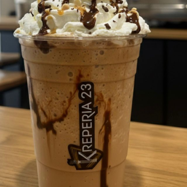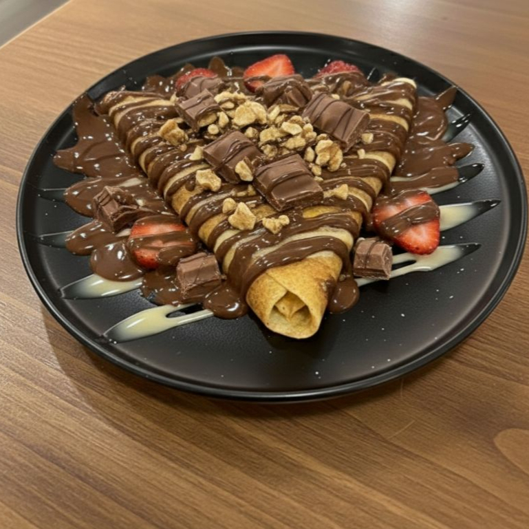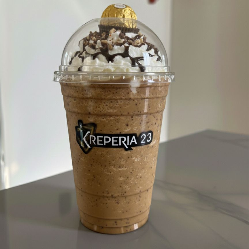 Base de queso Philadelphia con fresa, nuez troceada , chocolate Kinder y un toque extra de chocolate liquido
