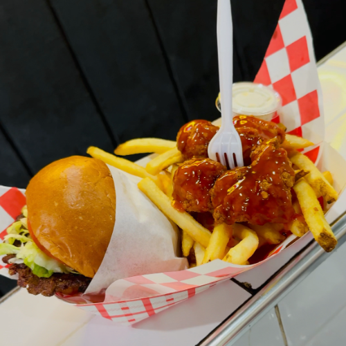 1 classic smash, 1 smash fries, 100g de boneless y 1 bebida