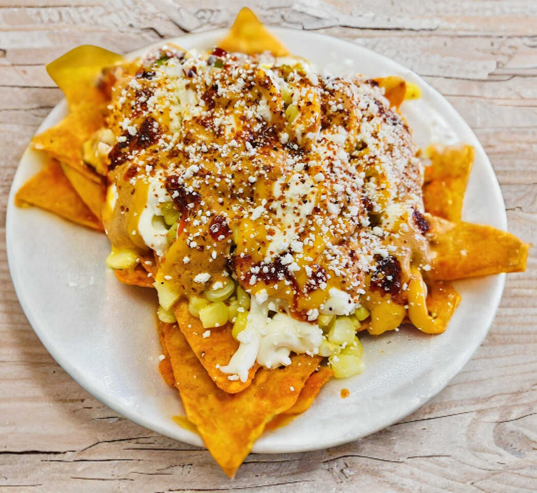 Mayonesa, mantequilla, crema, queso cotija, chipotle, chile jalapeño y salsa de la casa.