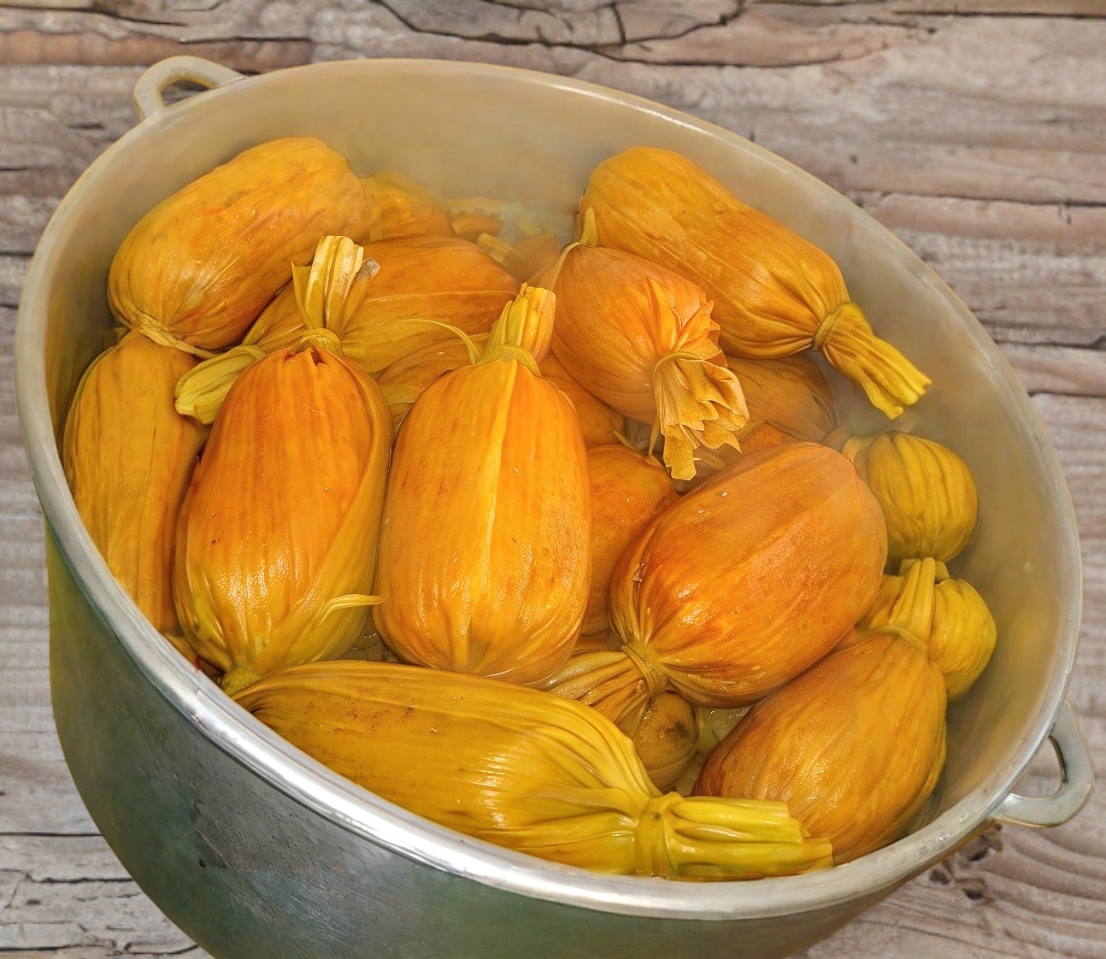 Tamal carne de puerco, en chile colorado estilo Sinaloa.