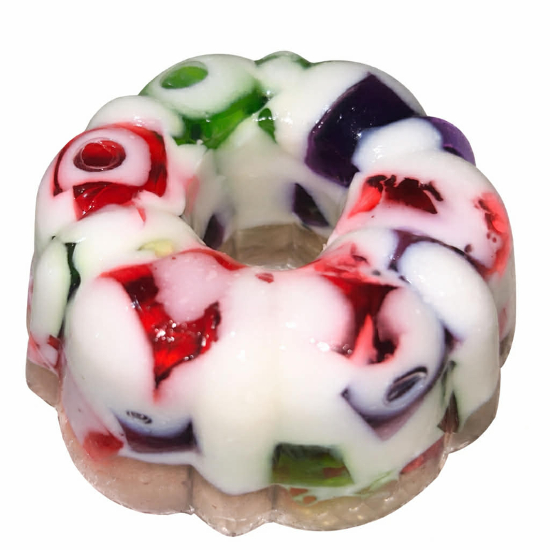 Gelatina de mosaico Base de leche y mosaico sabor fresa, uva y limón