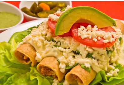 Plato personal. 3 Enchiladas, frijoles y arroz. Opcional: res, pollo o queso.