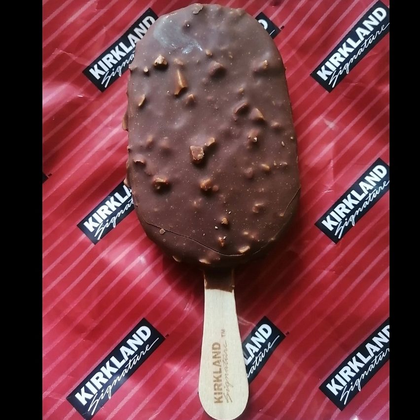 Helado de vainilla con cobertura sabor chocolate y almendras