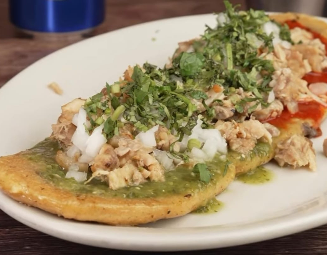 Deliciosa gordita de chicharron prensado acompañada de quedo cebolla y ensalada de nopal