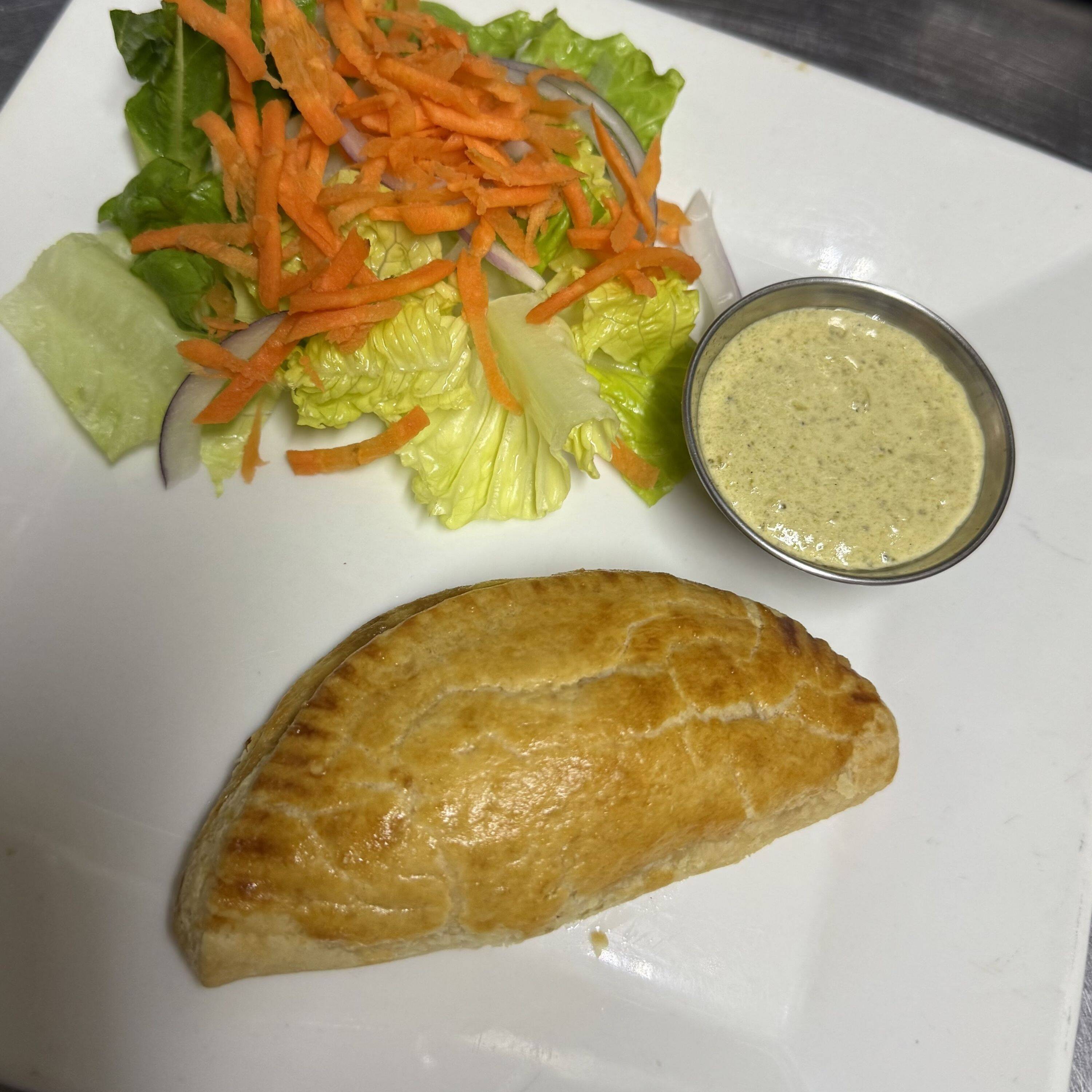 1 Empanada de hojaldre horneada, rellena de delicioso estofado de salmón.