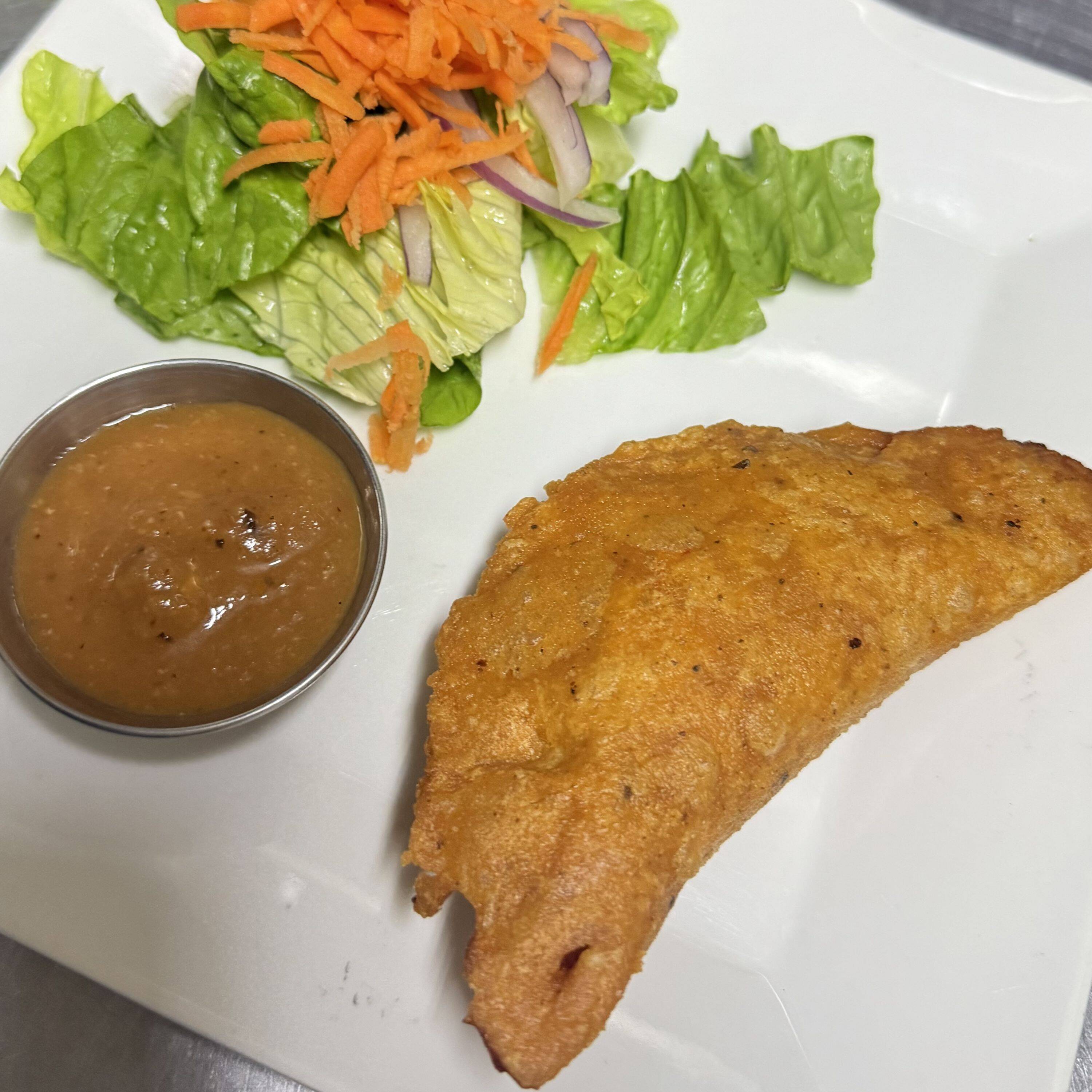 1 Empanada de masa frita en aceite bajo en grasa, rellena de delicioso estofado de salmón.
