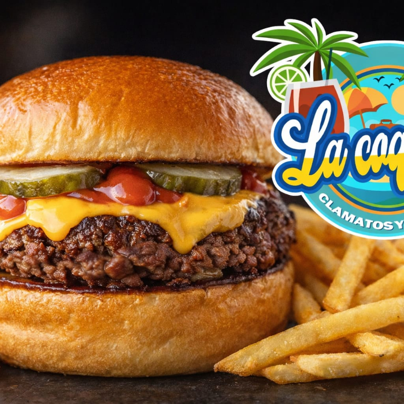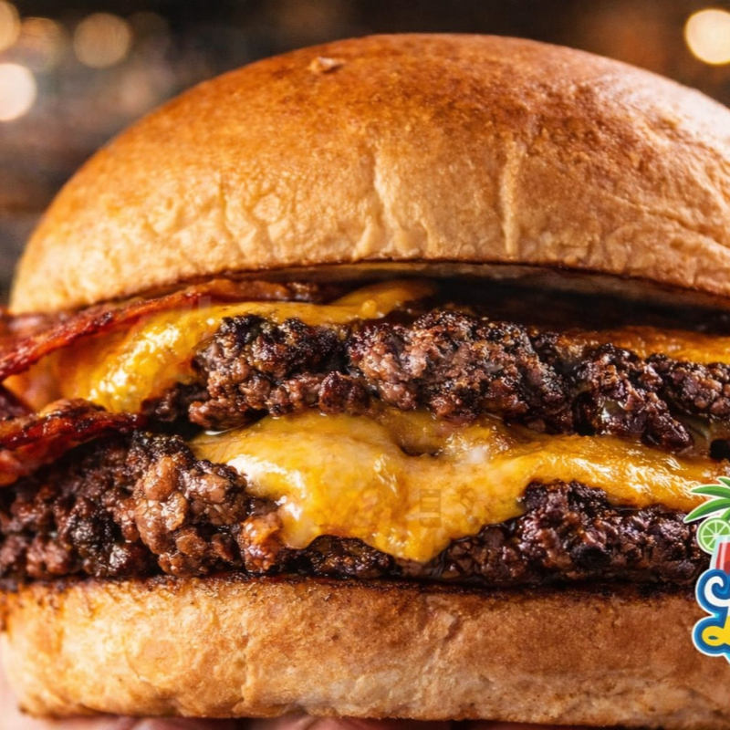 hamburguesa con carne doble carne hecha en casa, lechuga y aderezos con papas.
