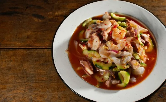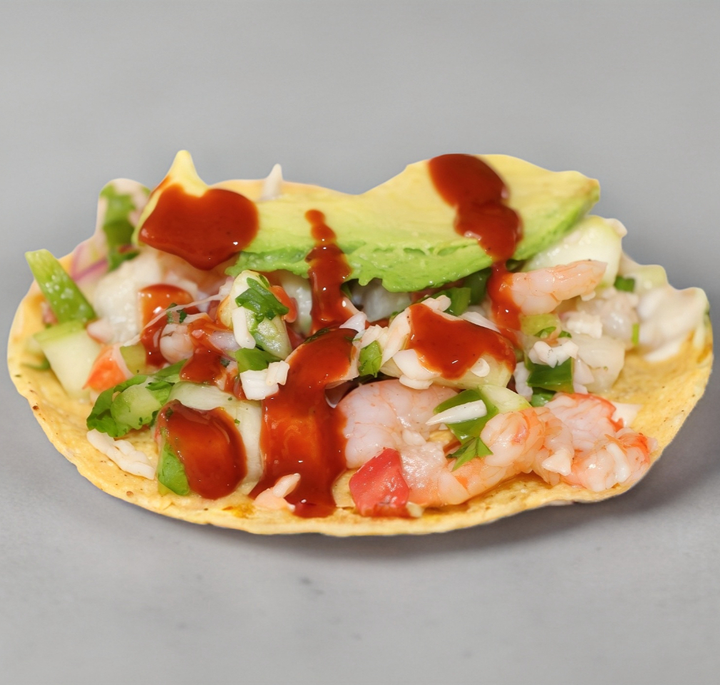 Repollo, cebolla, morado, aderezo, crema y salsa.