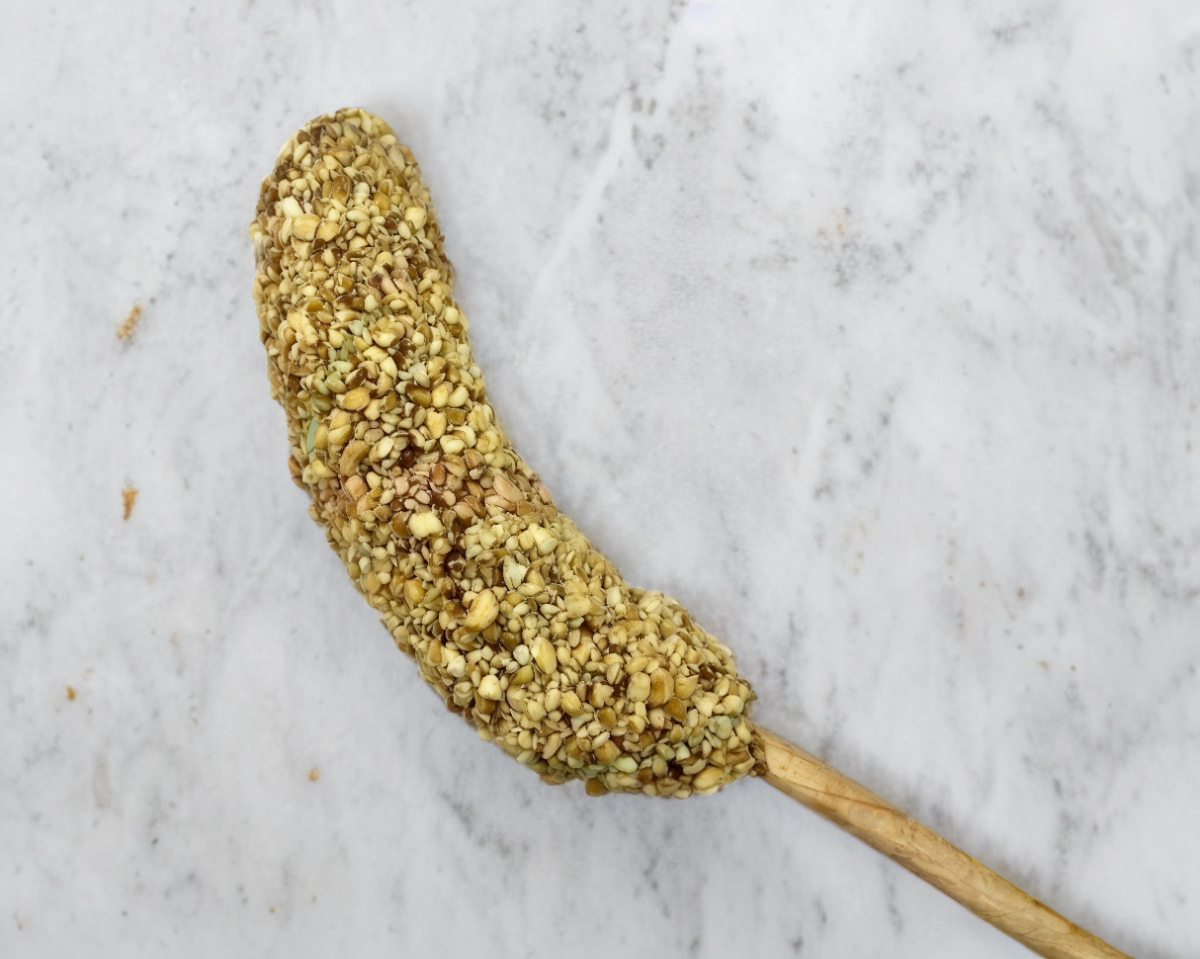 Platano cubierto de chocolate y coco