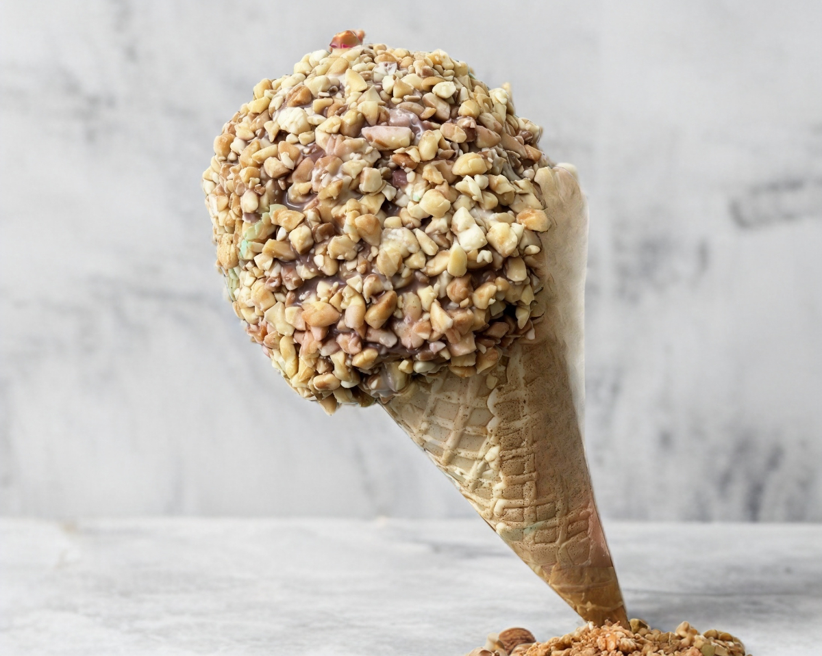 Cono con helado cubierto de chocolate y cacahuate
