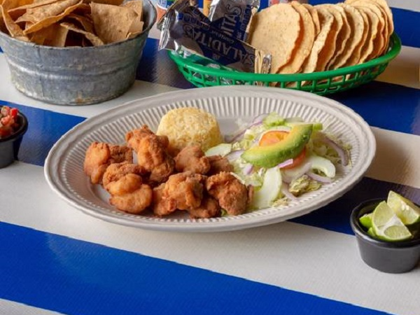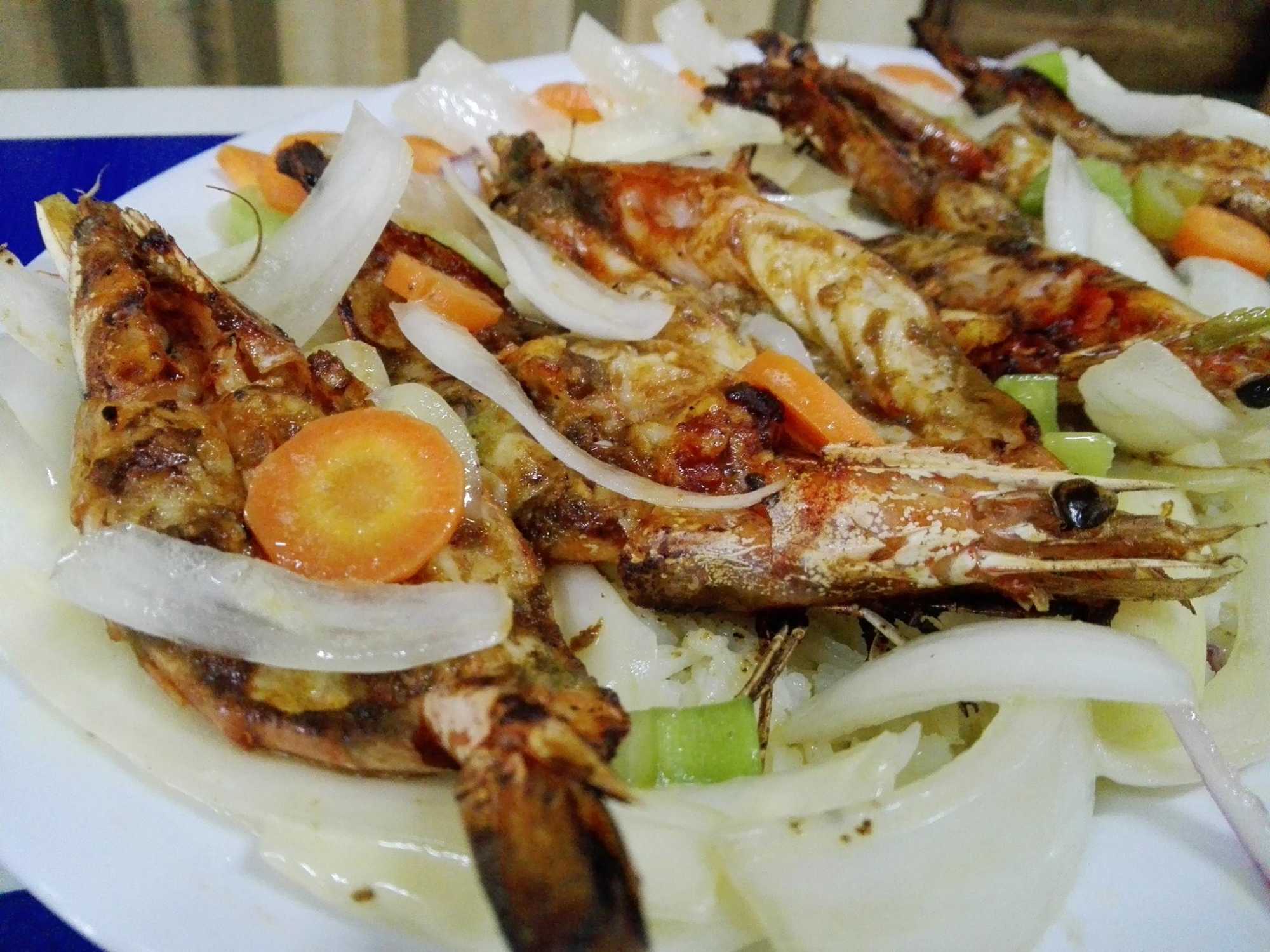 Camarones (200 gr) al carbon. Incluye tortillas y salsa bandera.