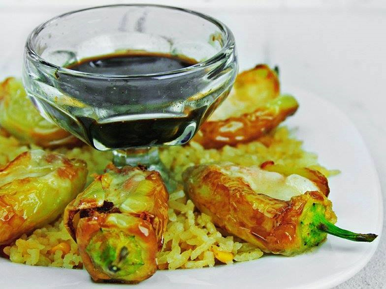 Chiles güeros y rellenos de camaron, marlin o pulpo con queso.