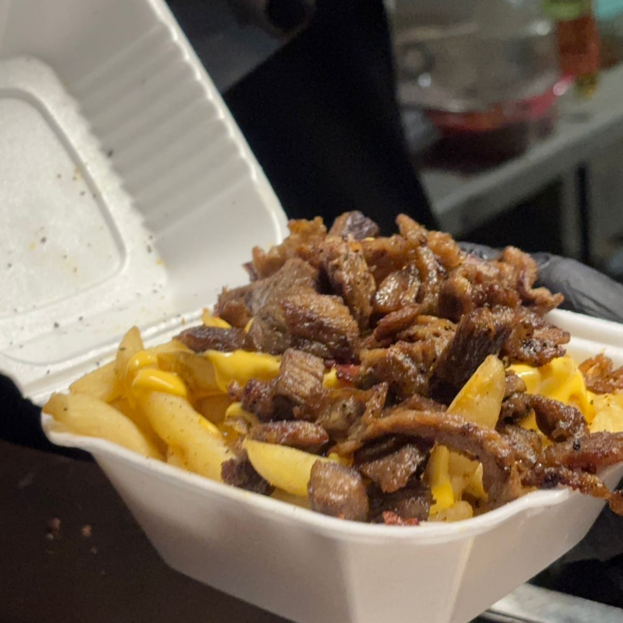Papas Fritas Con Carne y Tocino - queso de nachos (opcional)