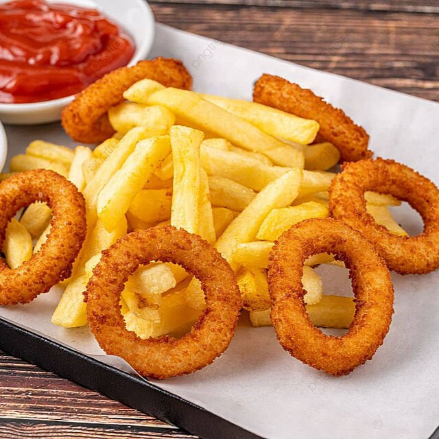 150gm Aros De Cebolla, 250gm De Papas Fritas Sazonadas En Lemon Pepper