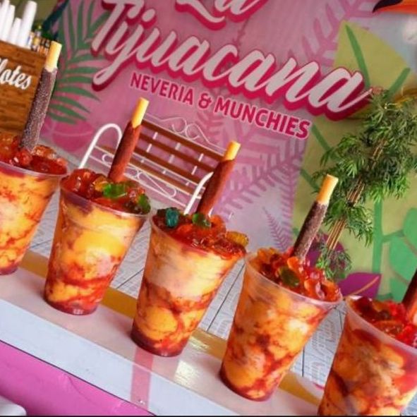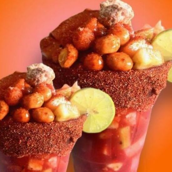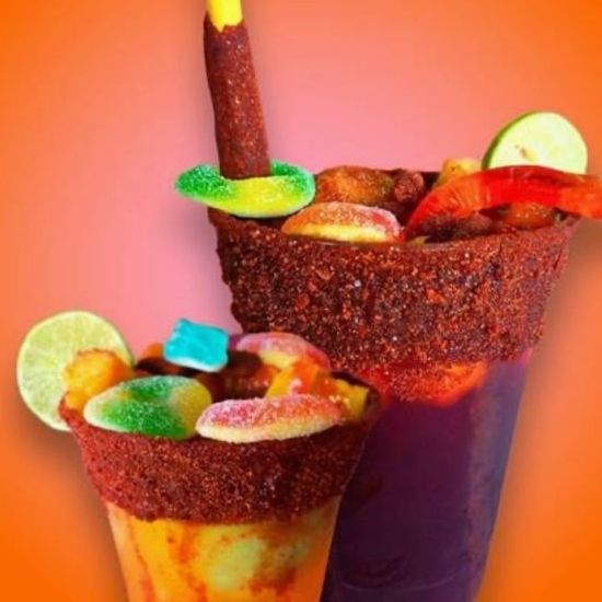 Bebida a base de hielo molido, chamoy, limón y Tajín, complementada con bola de nieve, trocitos de piña o fresa, gomitas, chaca chacas, tarugo y Miguelito.