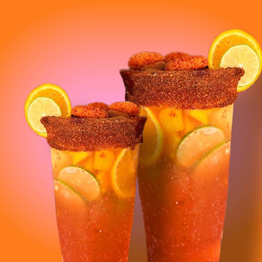 Bebida refrescante a base de agua fresca de tu elección, chamoy, miguelito, tajín, bola de nieve, chaca chacas, piña, gomitas y tarugo.