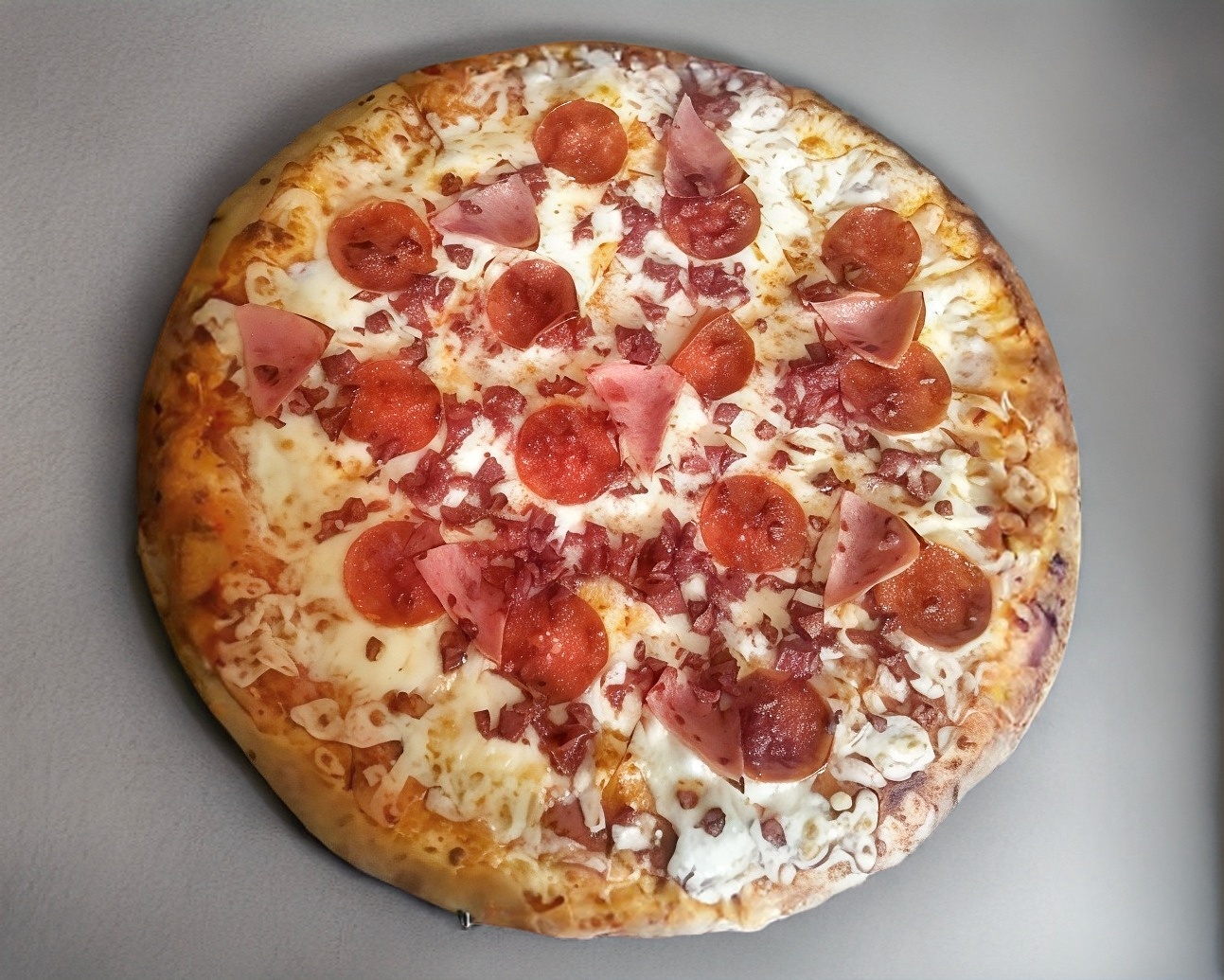Base de salsa de tomate, queso mozzarella, chorizo, salchicha italiana y pepperoni.