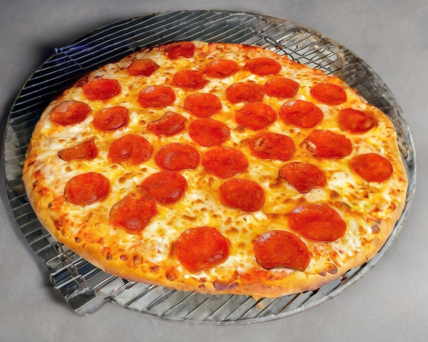 Pizza grande redonda de 14" para máximo 4 personas, contiene de 8 porciones con base de salsa de tomate, queso mozzarella y rebanadas de pepperoni.
